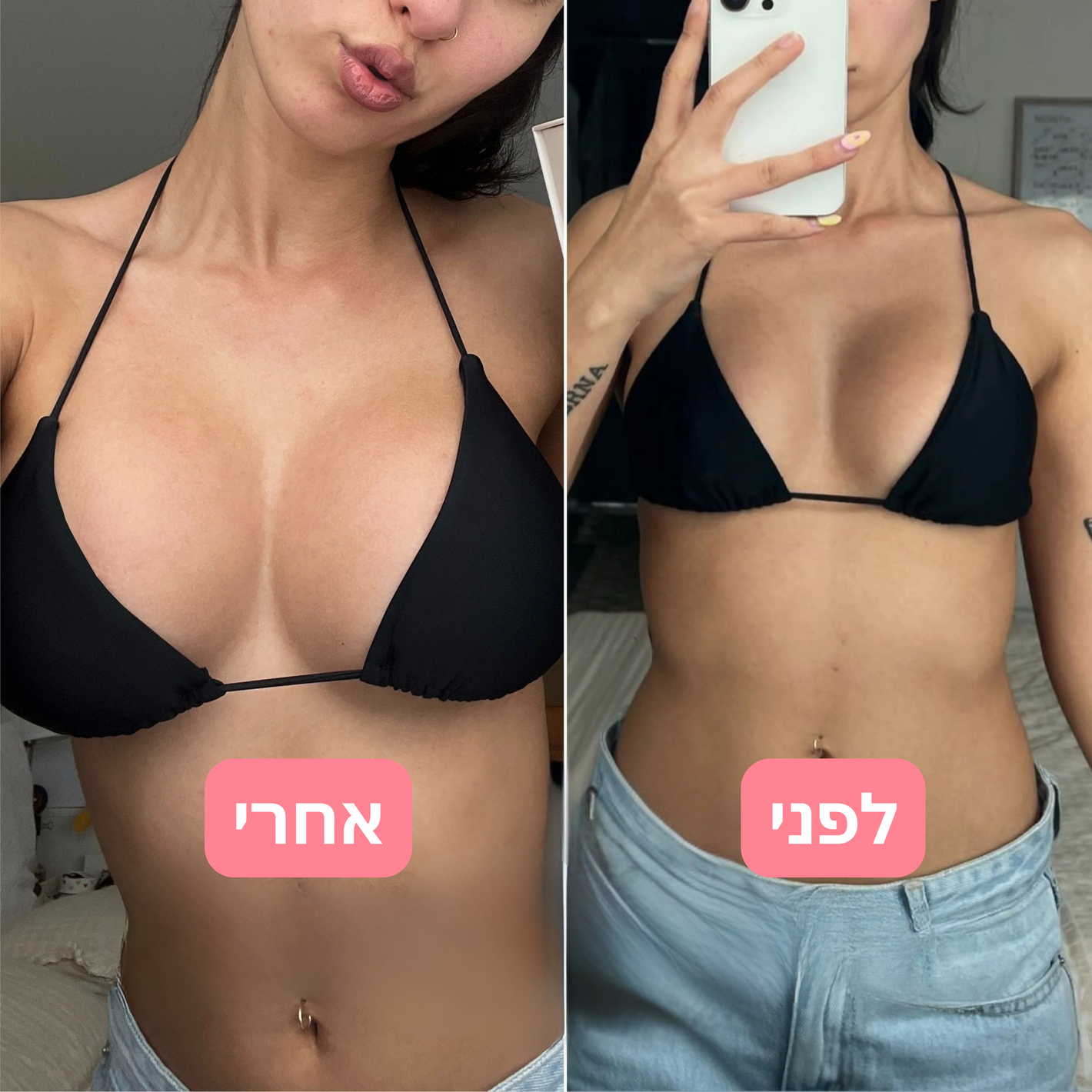 *תוצאות של עופרי, לקוחה מאומתת שלנו. לאחר לבישת מדבקות הגדלת החזה שלנו.